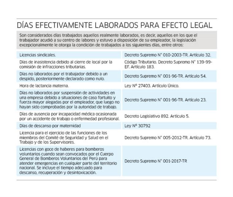 En cuanto a las remuneraciones percibidas que se incorporan al cálculo de la utilidad legal, la legislación considera como tales al íntegro de lo que el trabajador recibe por sus servicios, en dinero o en especie, cualesquiera sean la forma o denominación que se le dé, siempre que sea de su libre disposición. No califican como beneficios remunerativos aquellos señalados en los artículos 19 y 20 del Decreto Supremo N° 001-97-TR, Texto Único Ordenado del Decreto Legislativo 650, Ley de la Compensación por Tiempo de Servicios) y por ende, se encuentran excluidos de la base de cálculo de la participación legal en las utilidades.