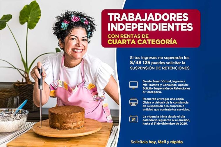 Dichos límites permiten que los trabajadores independientes que perciben Rentas de Cuarta Categoría se acojan a la suspensión de los pagos a cuenta y de las retenciones del Impuesto a la Renta durante el año 2026.